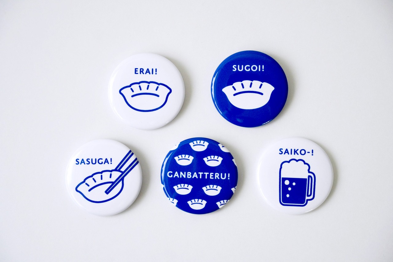 餃子・ビールが褒めちぎってくれる缶バッジ。